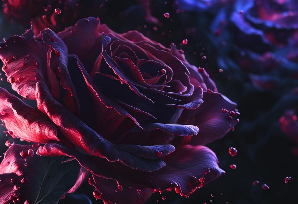 This image shows abstract bleeding roses in vivid colors. The artwork features intricate details and a fantastical concept art style, rendered with a matte painting effect.
