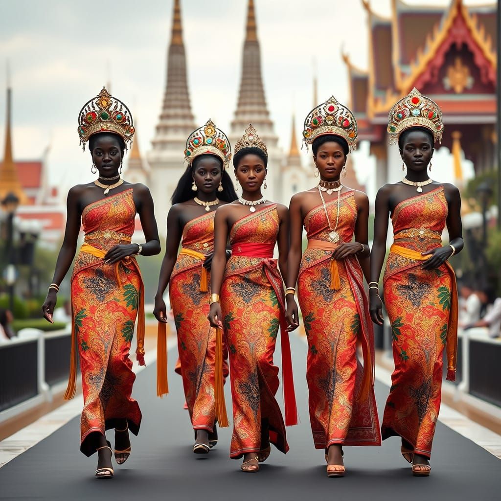 Create your own fashion shows with our free AI image generator. Easily design images of women in traditional Thai clothes and other cultural settings.