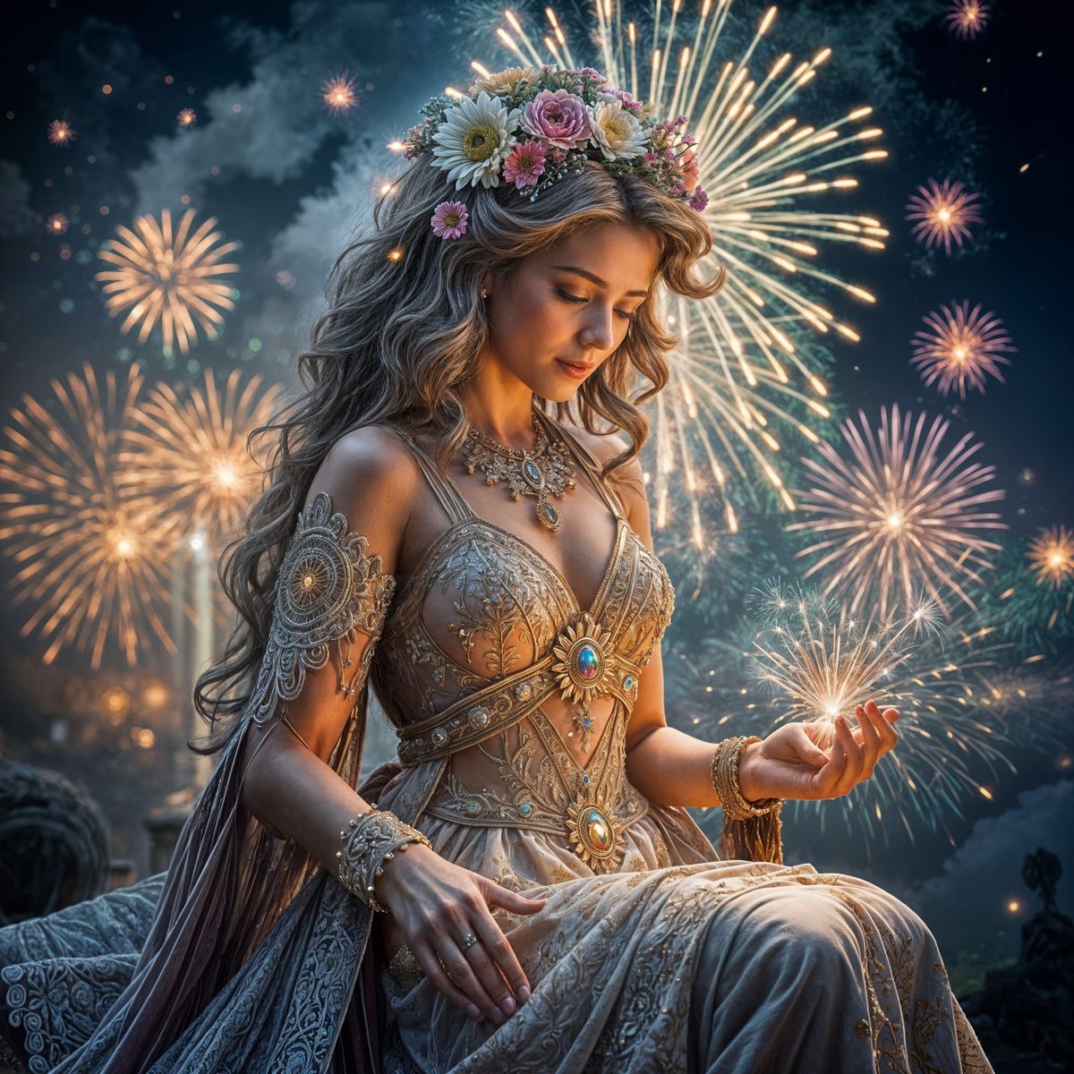 Design your own Pyromania, Goddess of fireworks with our free AI image generator. Easy and fun!