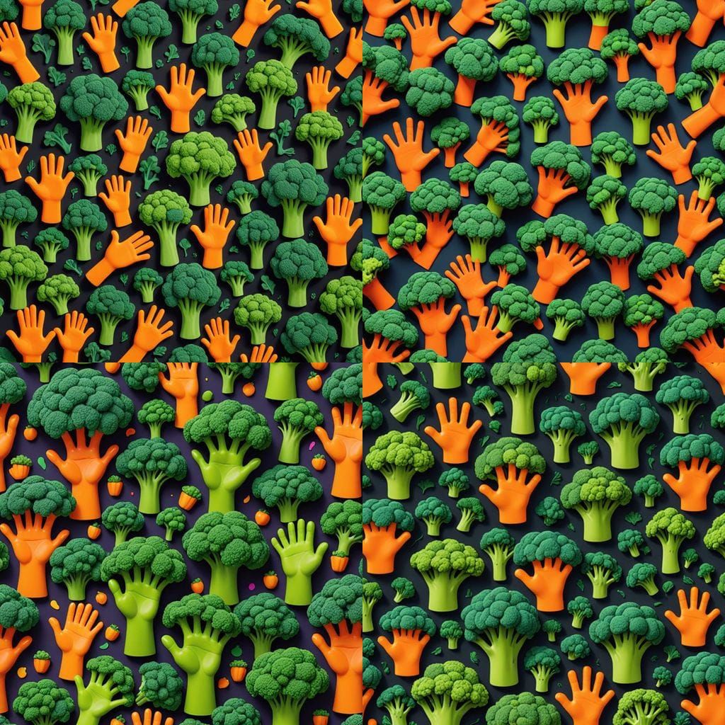 Easily create your own broccoli art with our free AI image generator, featuring neon colors and fun characters.