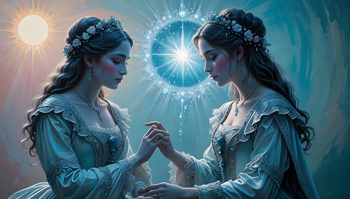 This image shows a surrealist painting in Victorian style with pastel colors. The soft impasto painting captures a convulsive beauty with volumetric and sparkling light, reminiscent of sepia photography.