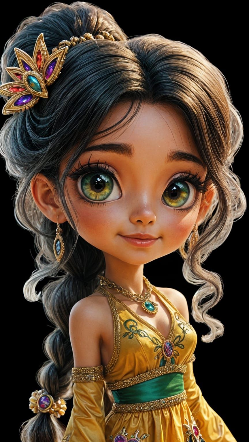 This image shows a stunning Latina woman with a Honey skin tone, intricate braided hair, and striking green-hazel eyes, dressed in vibrant Mardi Gras-inspired clothing, rendered in a highly detailed, airbrush oil painting style.