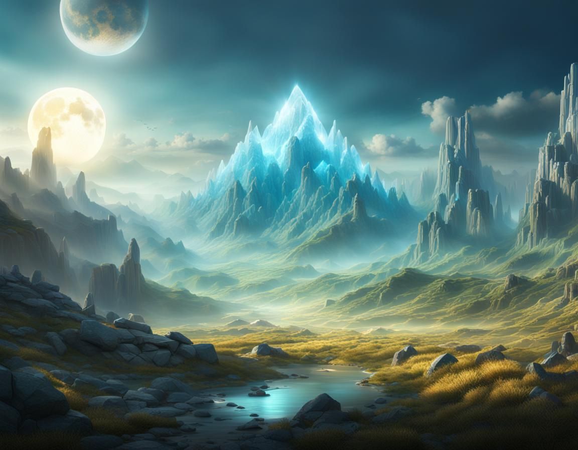 Create your own crystal landscapes with our free AI image generator. It's easy and fun!