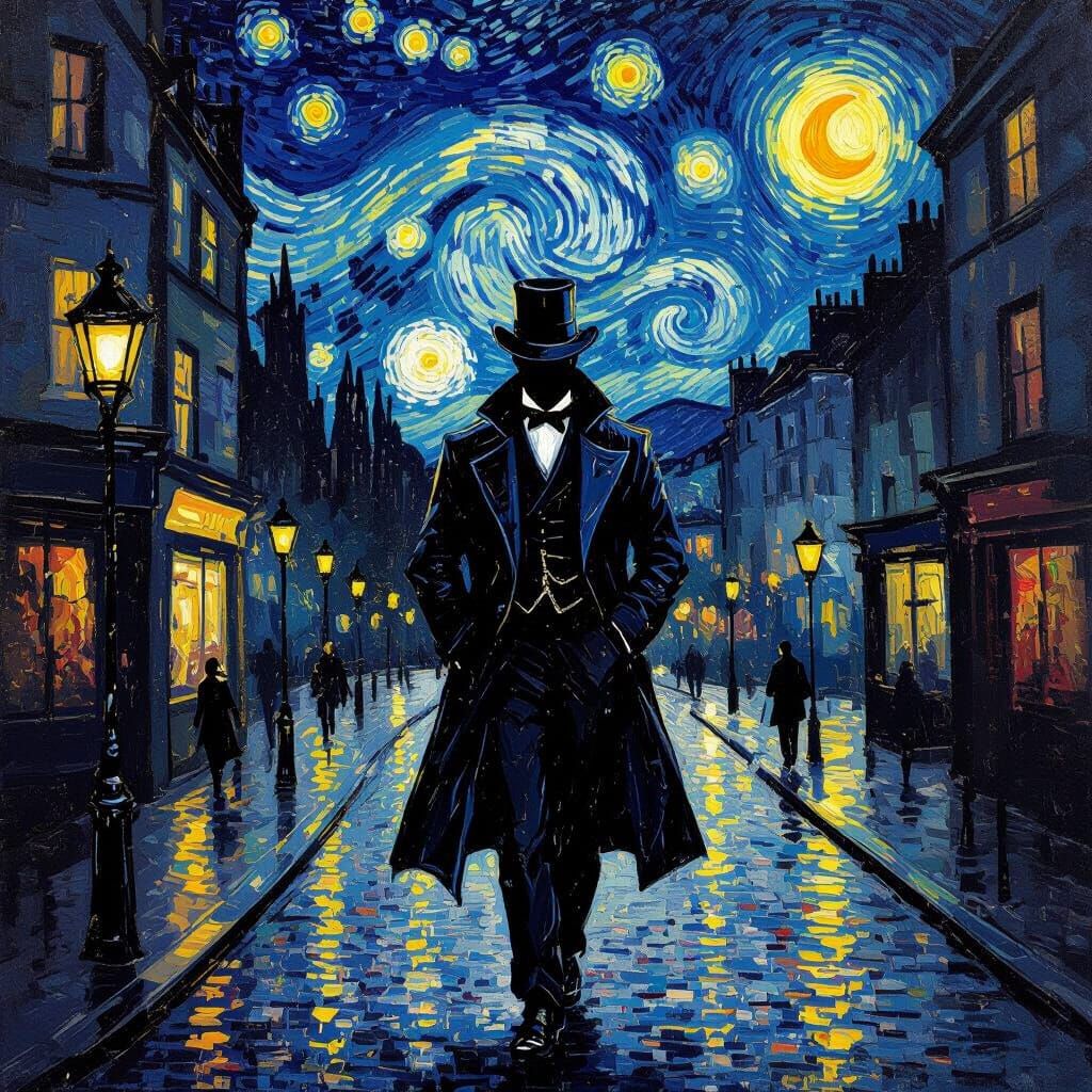 Create your own images of Sherlock Holmes in the style of Van Gogh, inspired by "The Starry Night". It's easy and free!