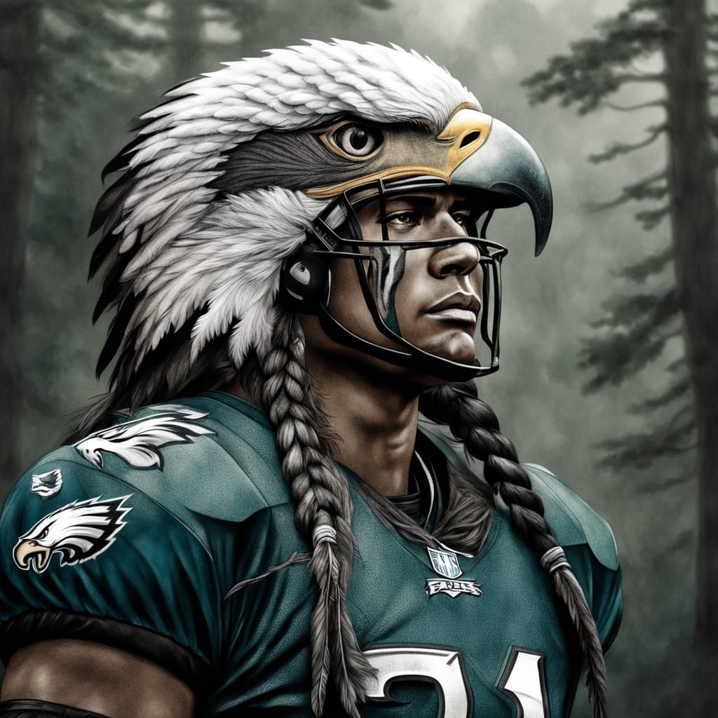 POCAHONTAS WITH BRAIDED HAIR NFL PLAYER PLAYING FOR THE PHILADELPHIA EAGLES.