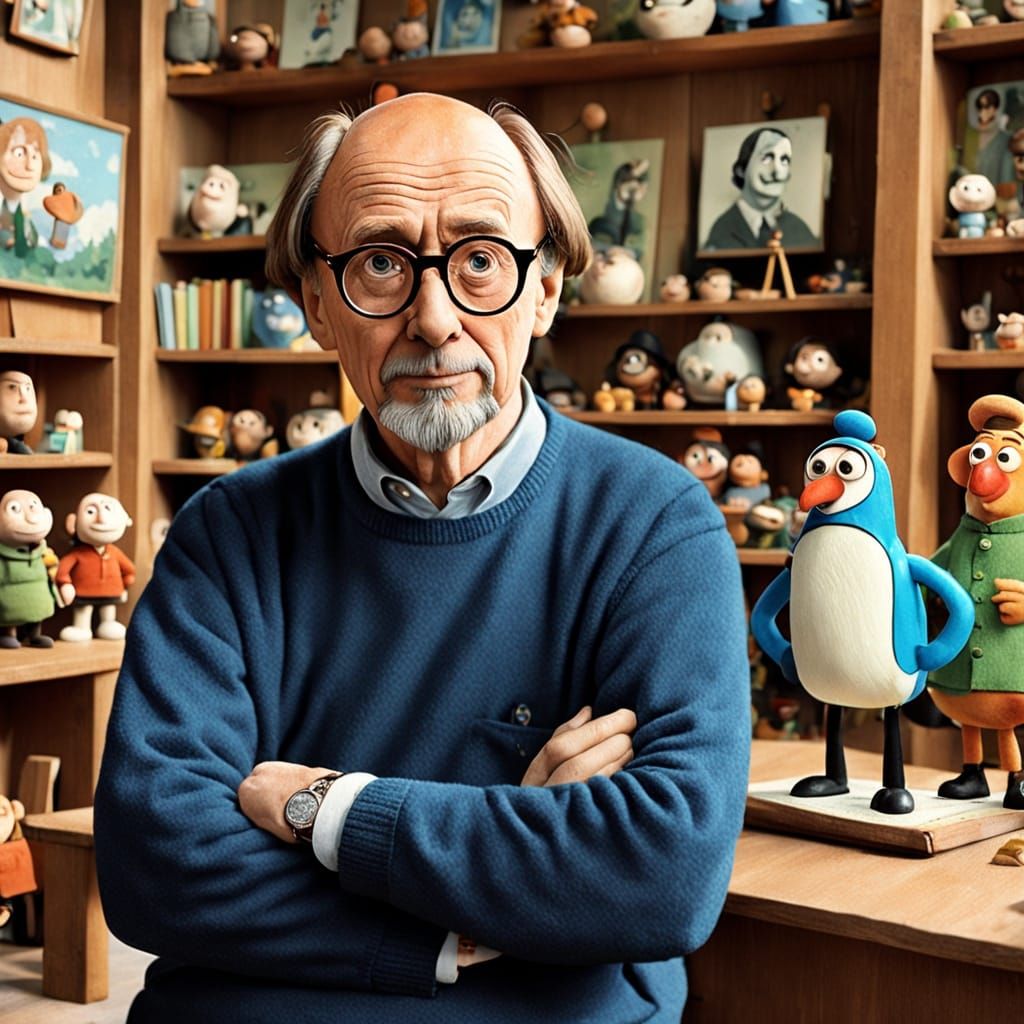 This image depicts a character named Mr. Zenkin, who believes himself to be the smartest person, rendered in a style blending Andrei Rublev and Aardman Animation aesthetics.