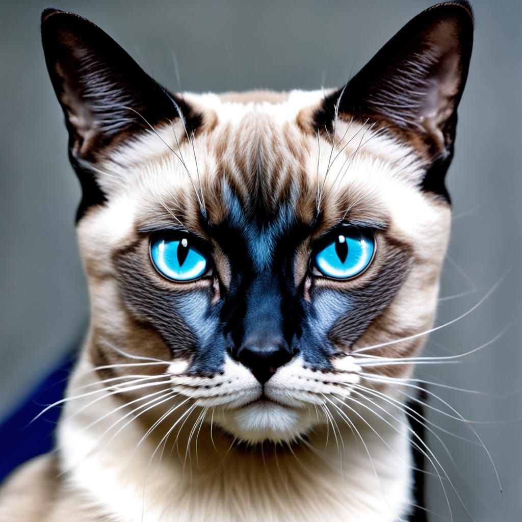 This image shows a neo-traditional tattoo design of a Siamese cat's head. The design features bold outlines, limited colors, and high contrast with sakura flowers. The aesthetic is reminiscent of classic tattoo flash art.