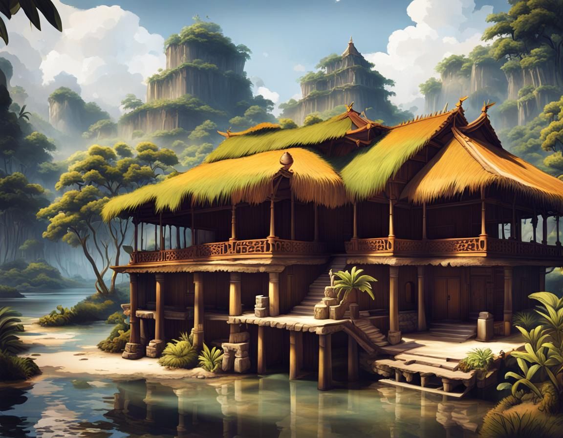 Create digital artwork featuring stilt houses and traditional Philippine architecture with our free AI image generator!