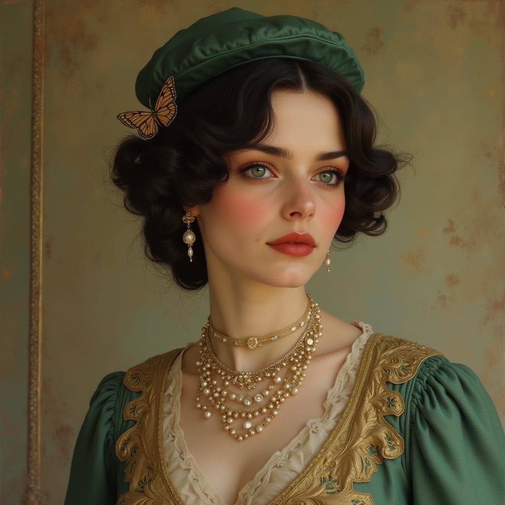 A stunning portrait of a sophisticated lady from the 1920s, showcasing her elegance and poise. This vintage-inspired image features a beautiful woman from the jazz age.
