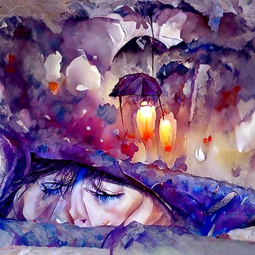 A watercolour painting of a heart lost in darkness, yearning for hope and rain. This image captures intricate details and dynamic lighting, showcasing a poignant scene.