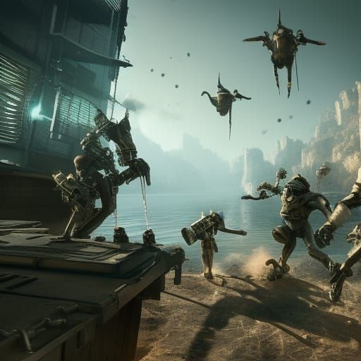 This image shows a highly detailed mechanical subject rendered with dynamic lighting and a cinematic feel. The composition evokes the style of modern 3D video game graphics.