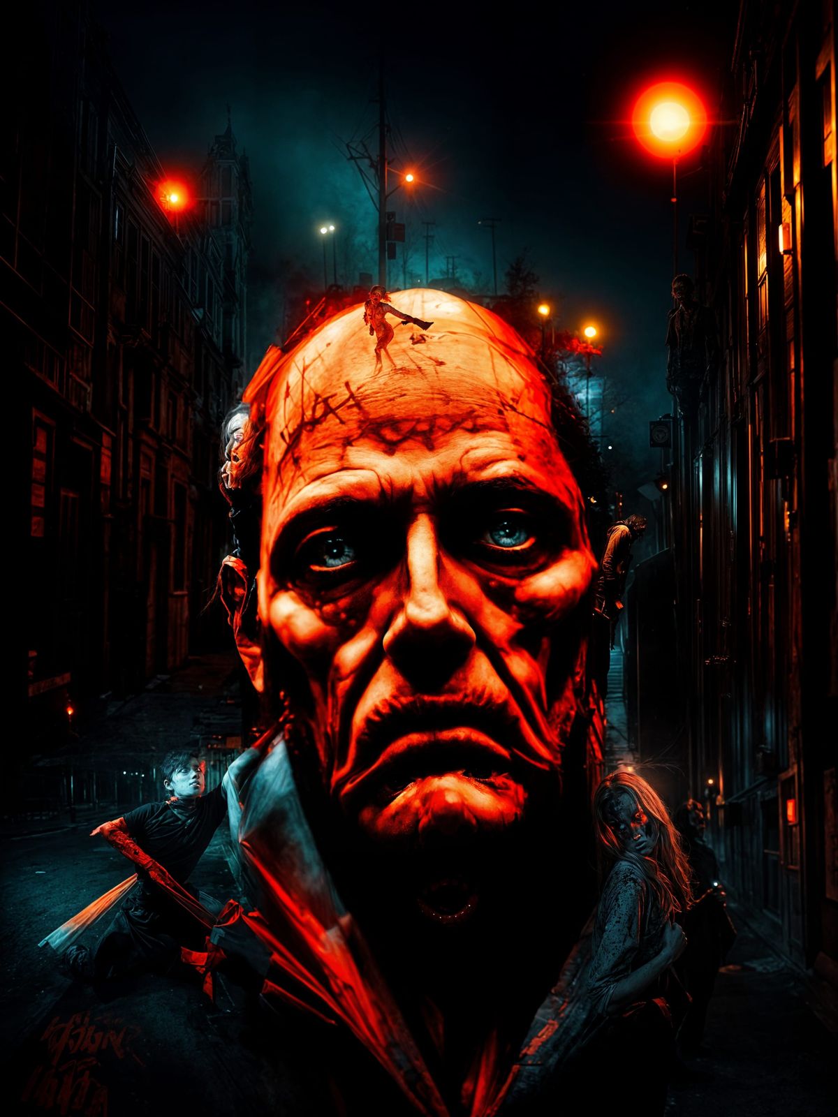 Create your own striking zombie scenes in monochrome orange with our free AI image generator.