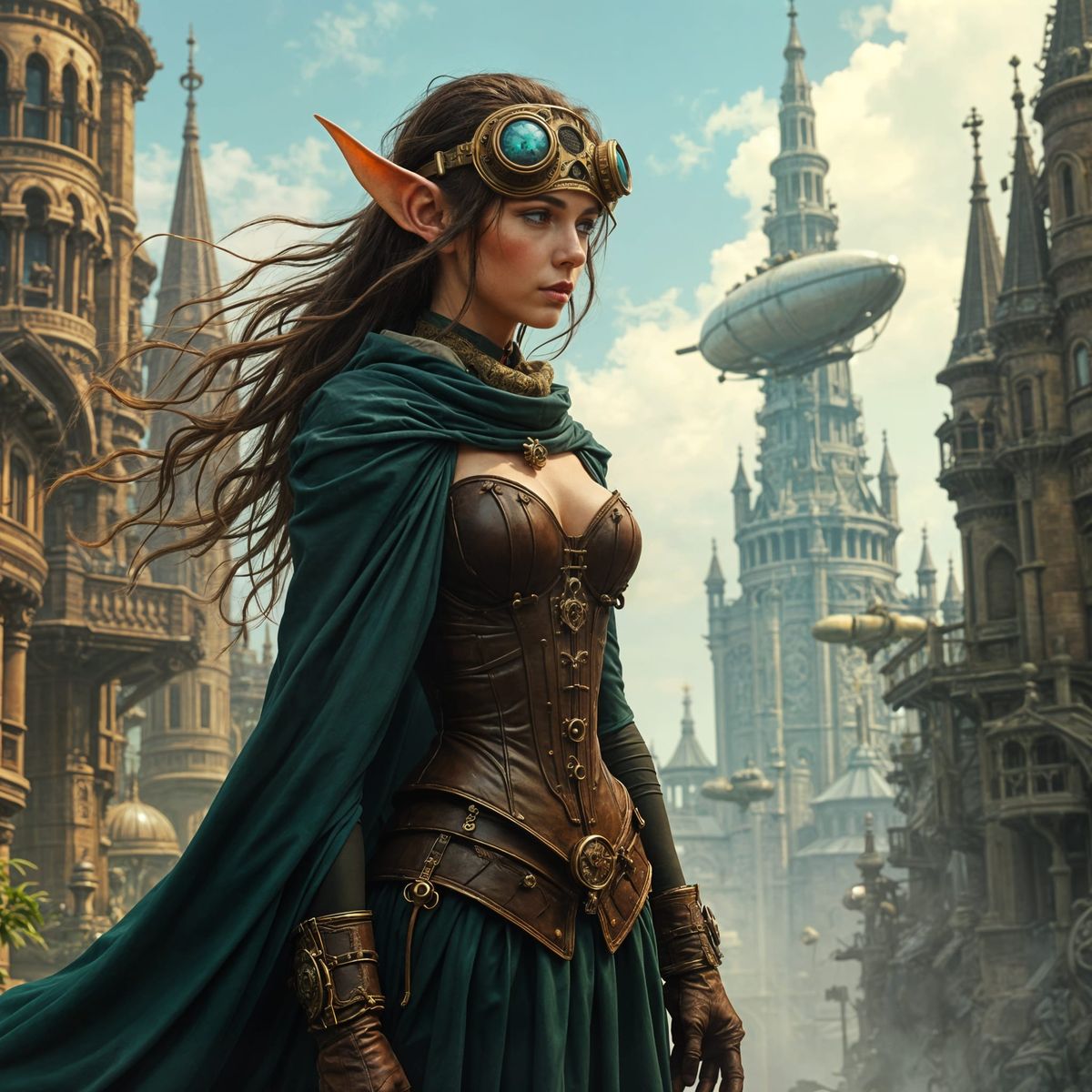 Generate unique AI images of elven wanderers in steampunk cities. Free, fast, and easy to use.