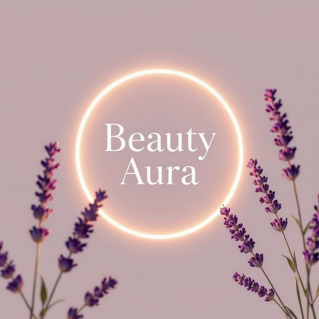 This image features a minimalist profile picture for 'Beauty Aura' with a calm wellness theme. Soft pastel colors and a subtle glowing aura create a clean, modern, and visually appealing design.