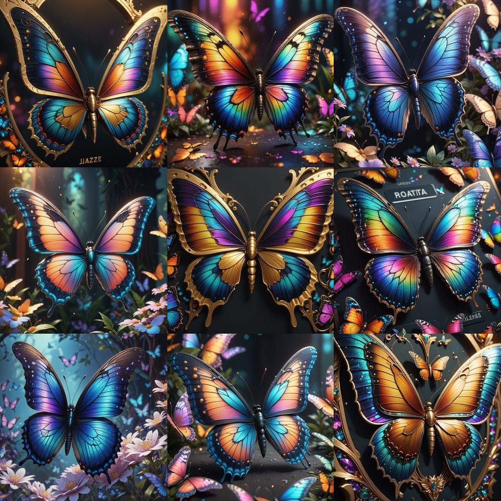 This image shows a detailed fantasy name tag with a delicate butterfly border, created with intricate matte painting techniques and deep, rich colors, blending fantastical and artistic elements.