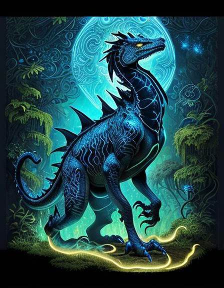 This image combines a double-exposed antique photo aesthetic with a glowing silhouette and a sinuous Art Nouveau dragon. Features blues, greens, and golden lighting in HDR 8k resolution.