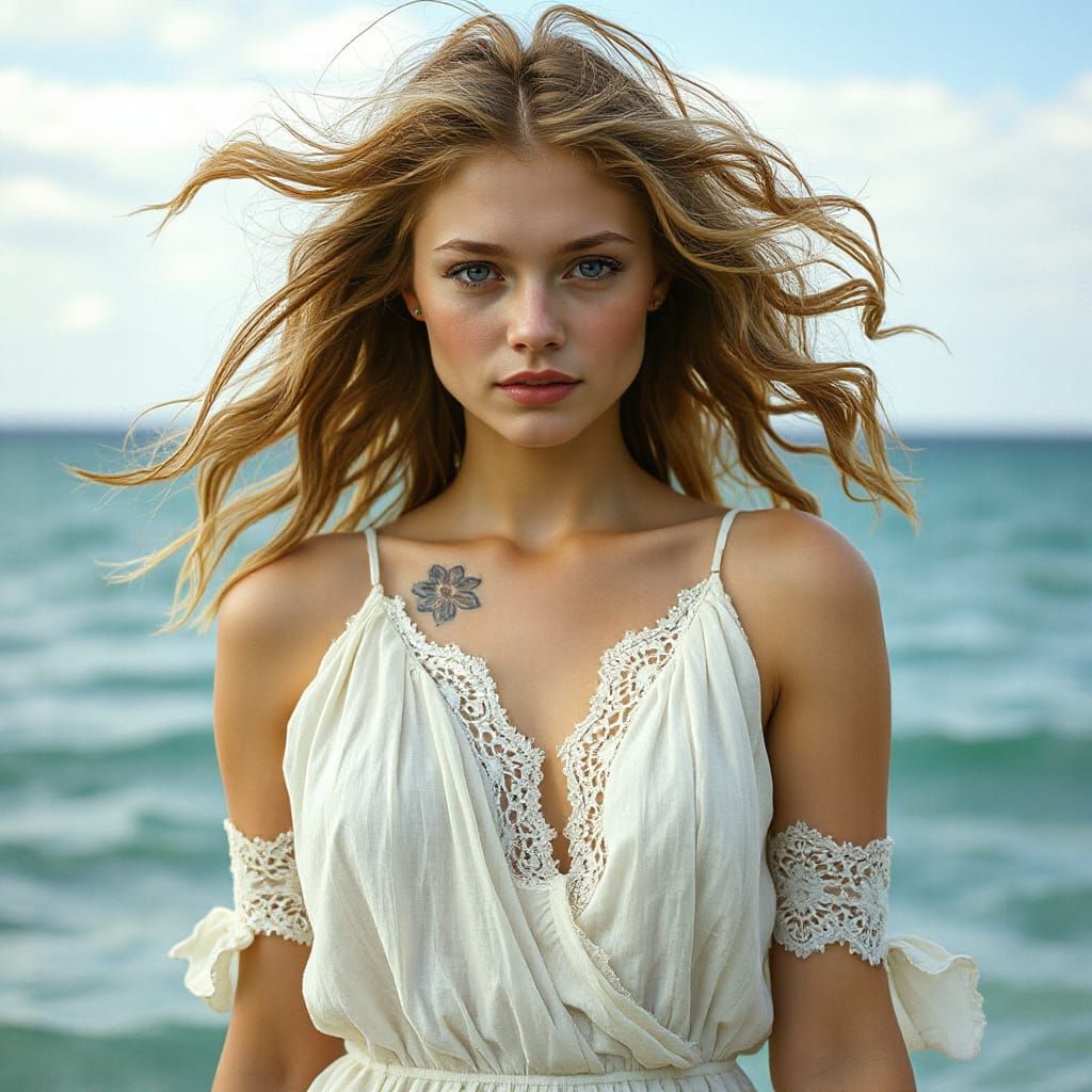 A captivating image of a woman with flowing hair and gentle features. The artwork evokes feelings of warmth and understanding with soft light and delicate details in an art nouveau style.