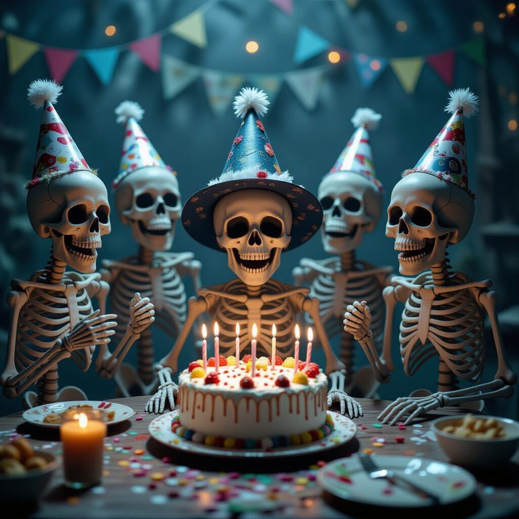 Generate unique skeletal birthday scenes easily with our free AI image generator. Perfect for unique invitations or decorations.