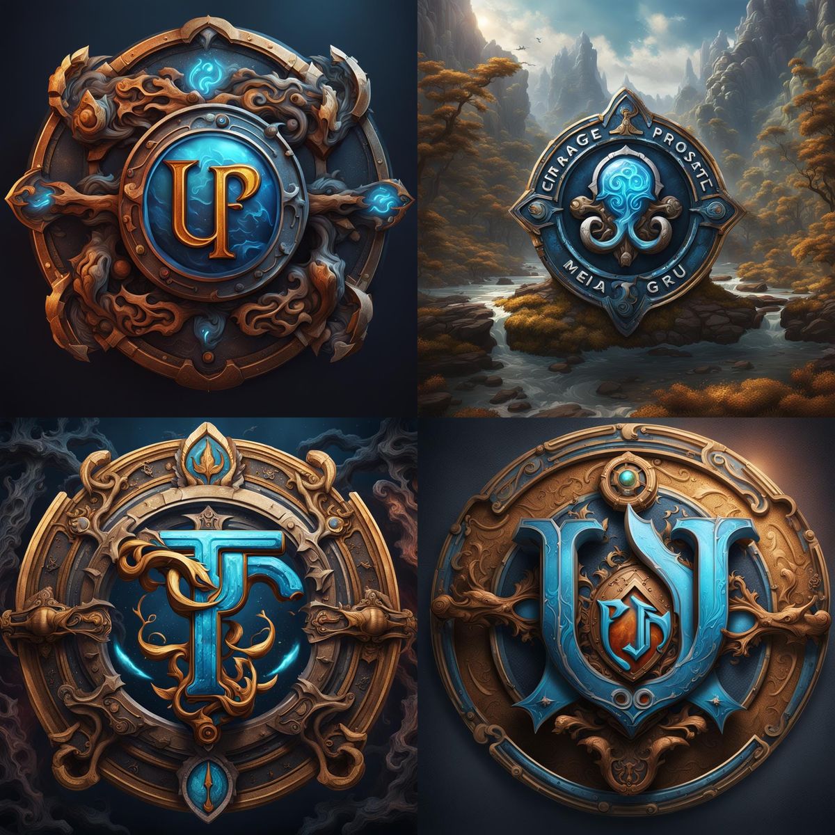 A logo design for the Enlarged Prostate Media Group, rendered as detailed matte painting. The design features deep, complementary colors and intricate details to create a fantastical concept.