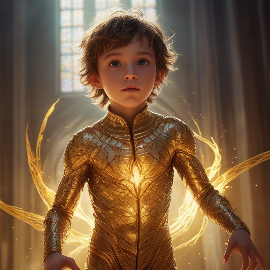 magic spectral infused dragon skin super suit with ghostly golden aura glow