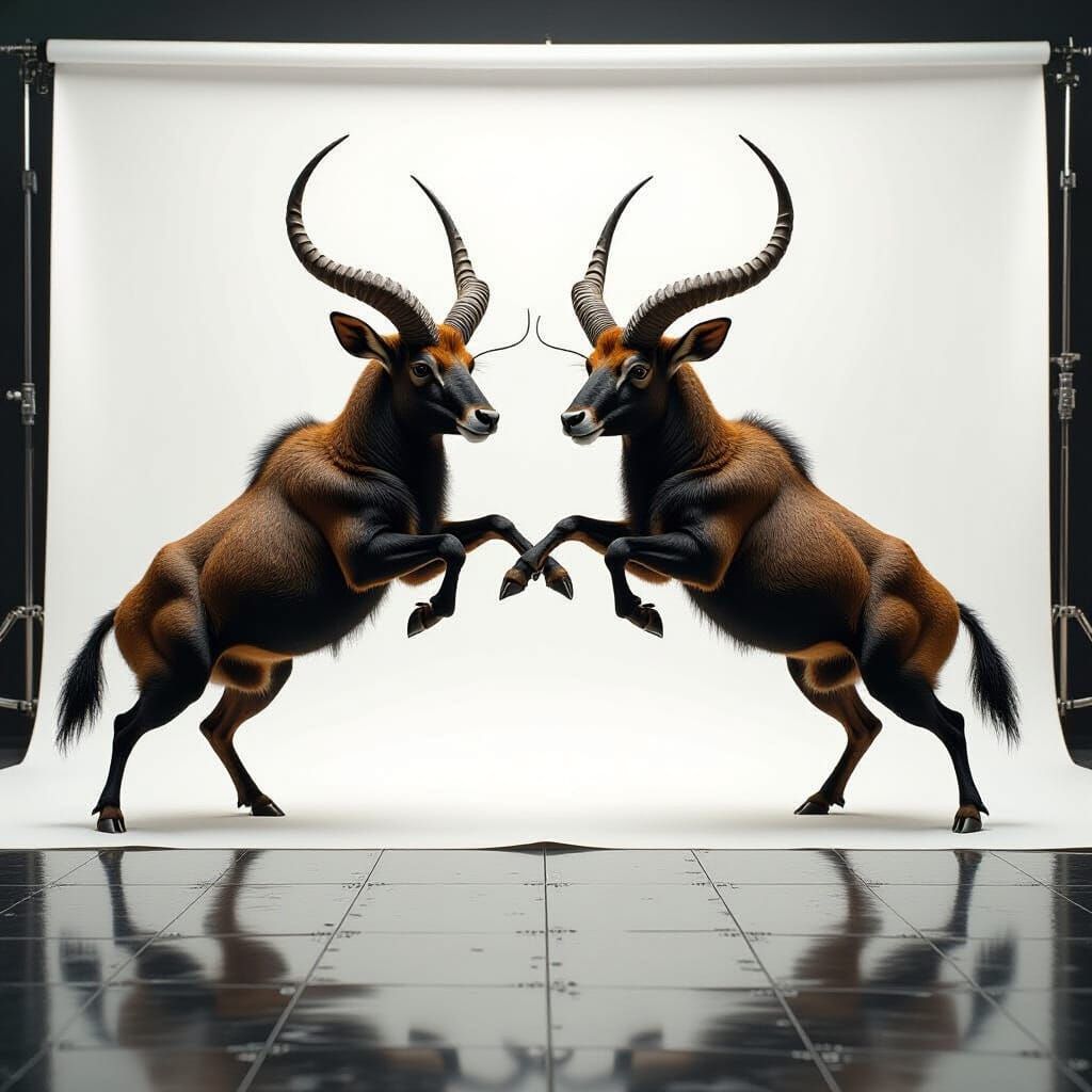bull ANTILOPEI massive and strong two duel of males, 21th century zoological illustration, John Gould, Paul Gervais, trends at the art station, sharp focus, studio photo, intricate details, highly detailed, white background, Greg Rutkowski, Realistic detailed Illustrated massive Thylacine running, shiny ...