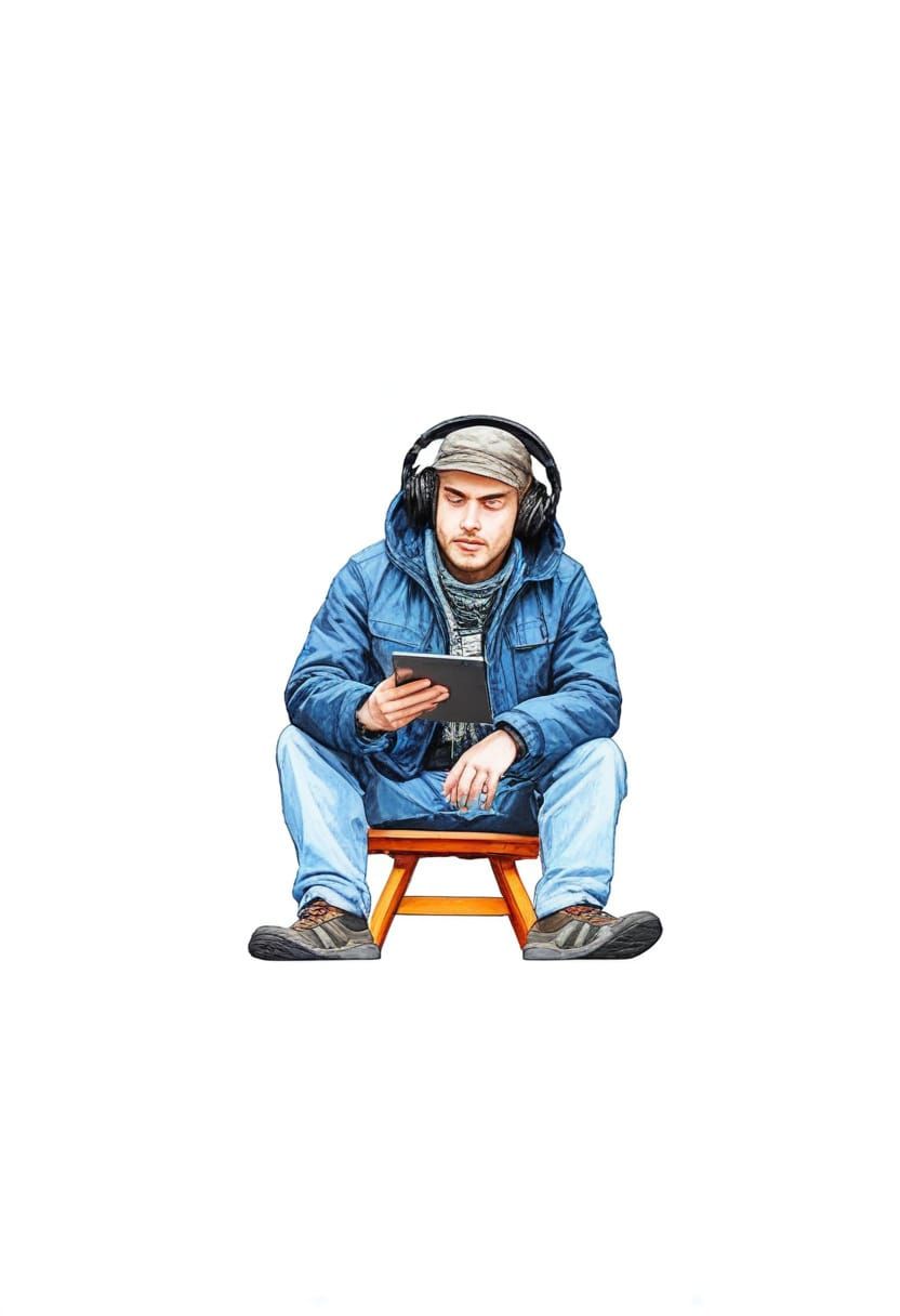 This image shows a soldier enjoying music on an iPad amidst Prague's historic streets. The artwork captures the scene with a warm color palette and soft lighting, reminiscent of Josef Lada's style.