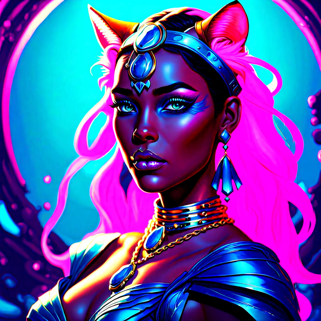 "A whimsical goth Egyptian tiger cat woman, adorned with intricate, colorful jewelry and makeup, presented in a vibrant cutecore aesthetic. The scene is richly detailed and bursting with playful, bright colors, such as NEON pinks, ELECTRIC blues, and LIME greens, with glowing accents. Rendered in a digital illustration style with vibrant gradients, reminiscent of the expressive, surreal, imaginative and detailed work of digital artist Loish and fantasy artist Boris Vallejo. cinematic lighting, ultra-detailed, 8k. detailed matte painting, deep color, fantastical, intricate detail, splash screen, complementary colors, fantasy concept art, 8k resolution trending on Artstation Unreal Engine 5 Pixar, Disney, concept art, 3d digital art, Maya 3D, ZBrush Central 3D shading, bright colored background, radial gradient background, cinematic, Reimagined by industrial light and magic, 4k resolution post processing graffiti art, splash art, street art, spray paint, oil gouache melting, acrylic, high contrast, colorful polychromatic, ultra detailed, ultra quality, CGSociety intricate details, HDR, beautifully shot, hyperrealistic, sharp focus, 64 megapixels, perfect composition, high contrast, cinematic, atmospheric, moody Hyperrealistic, splash art, concept art, mid shot, intricately detailed, color depth, dramatic, 2/3 face angle, side light, colorful background abstract art complementary colors fine details"