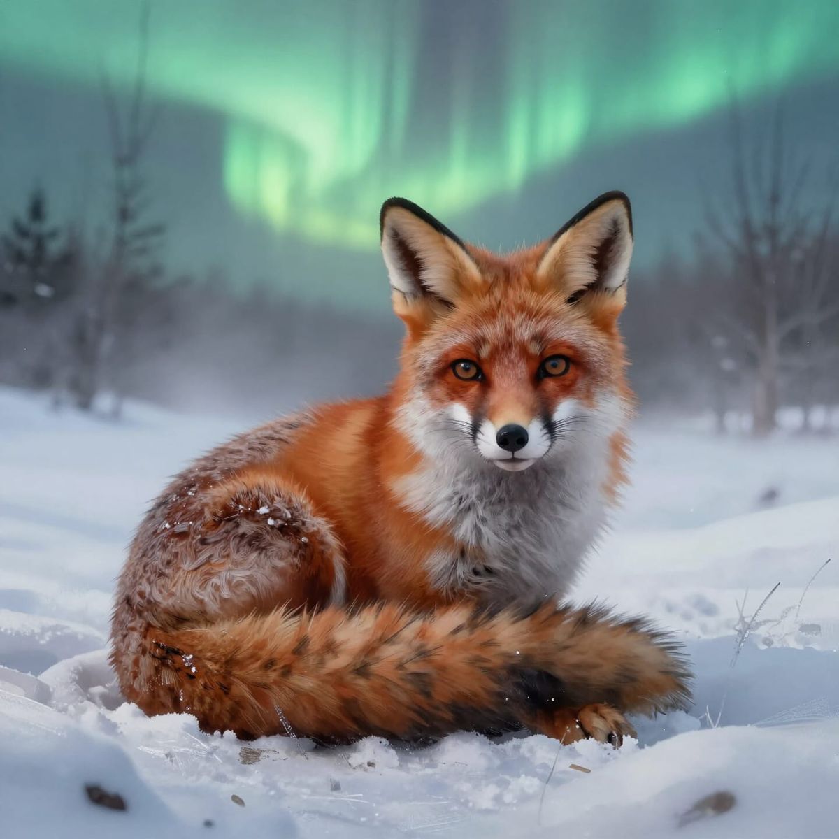 Curled Watcher Beneath Winter Lights
