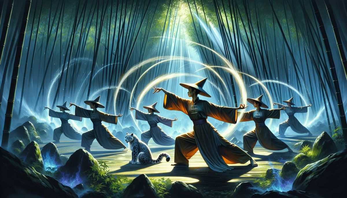 Generate unique images of oriental witches practicing tai chi in a mystical bamboo forest, easily and for free!