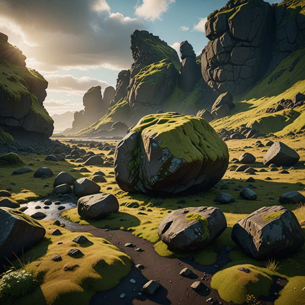 Explore the breathtaking scenery of Iceland with our free AI image generator. Easily create your own landscapes with giant boulders and scenic hiking trails.