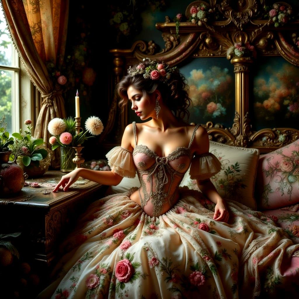 Easily generate your own Victorian-style boudoir images with our free AI image generator - flexible, easy, and fun!