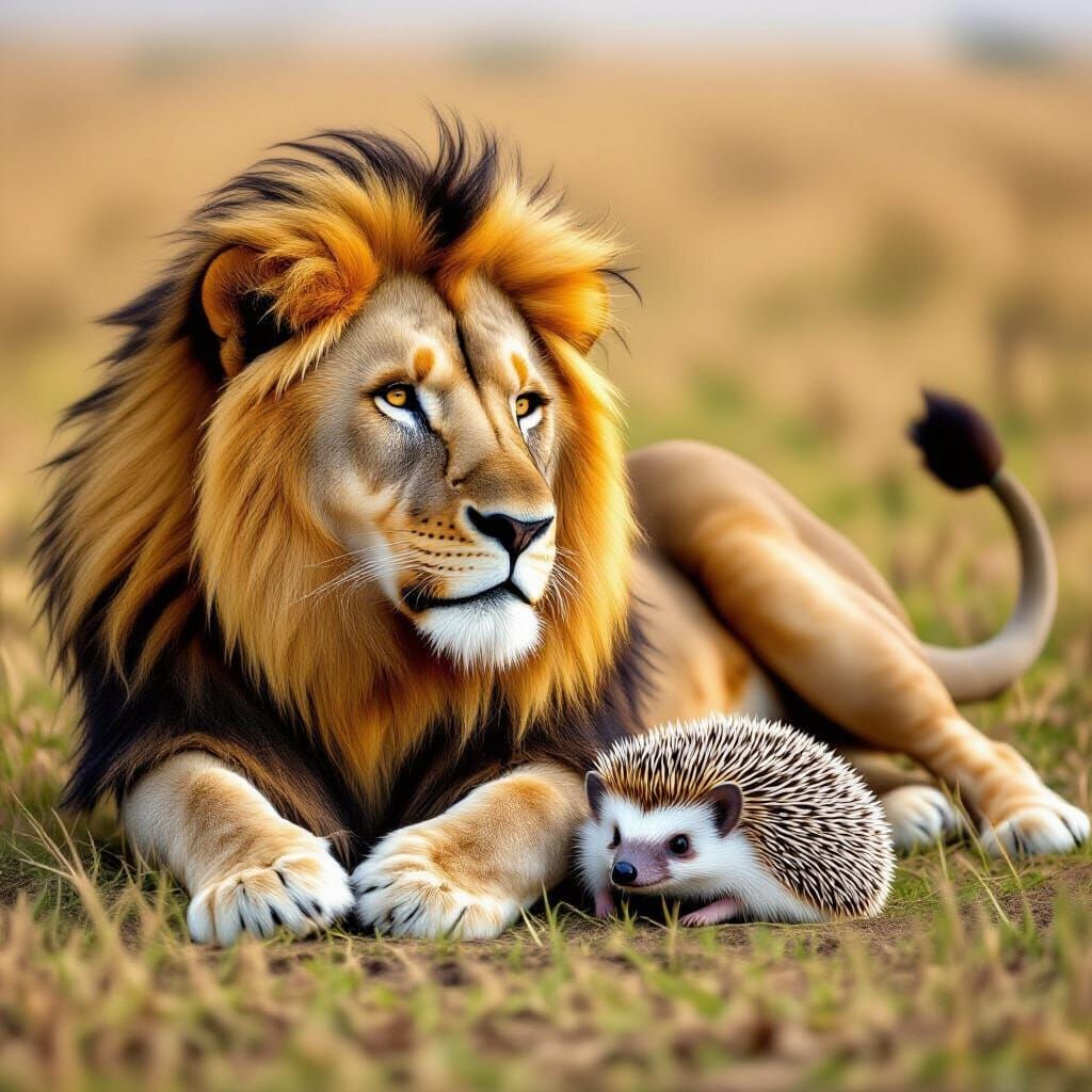 Generate your own unique images of savanna animals like lions and hedgehogs with our free and easy AI tool.