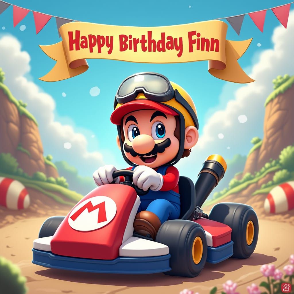 Create your own custom Mario Kart themed birthday images. It's fun, free, and easy with our AI image generator!