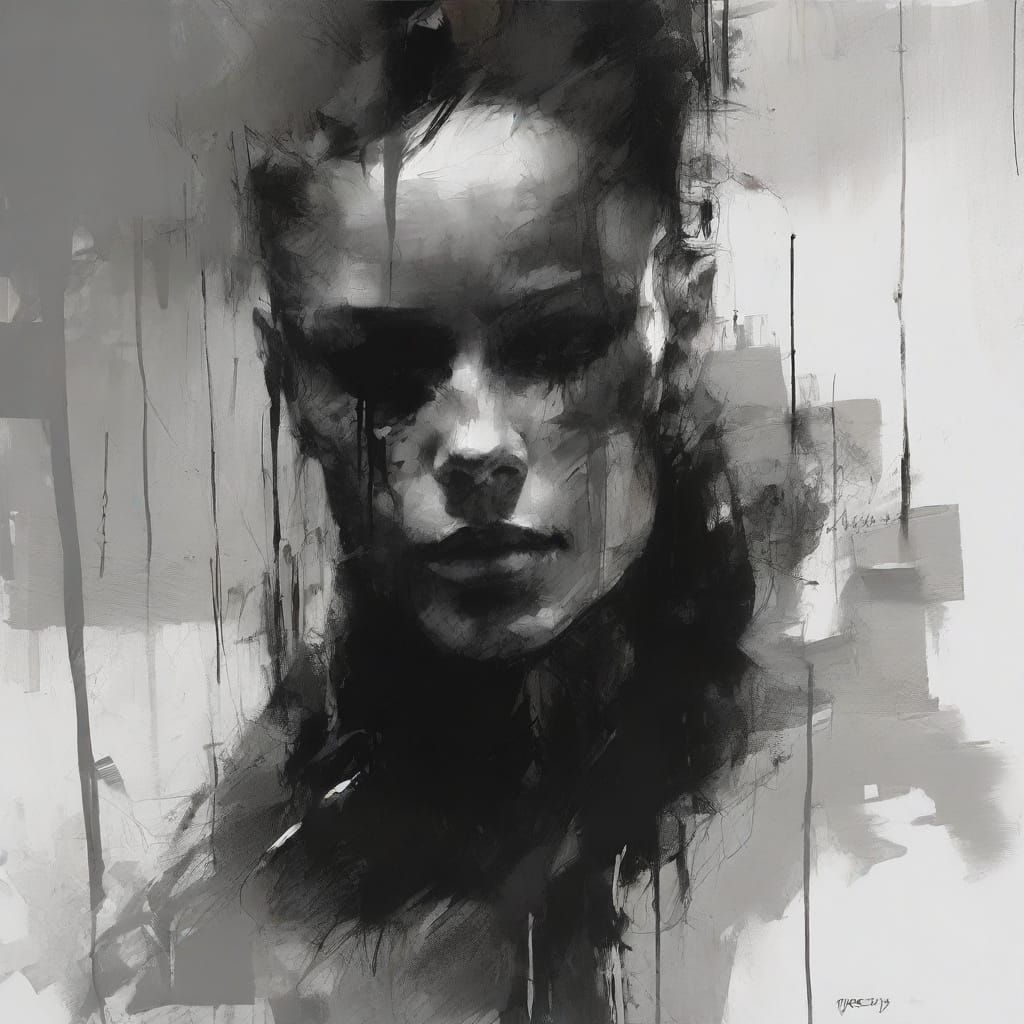 This striking image captures a spooky grayscale portrait of a lost soul, rendered with a dramatic and textured artistic style.