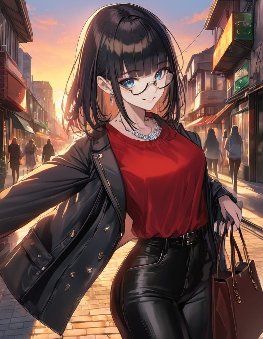 "female, bishounen, white skin, blue eyes, glasses, long black hair, straight bangs, smiling, looking at viewer, absurdress, high quality"