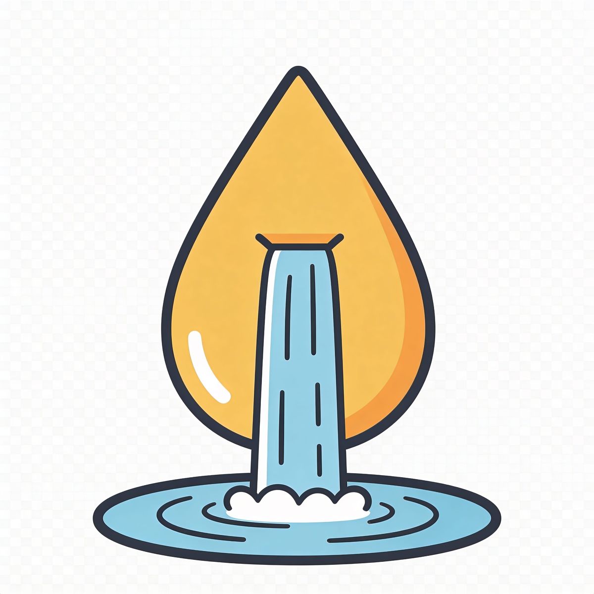 This image features a clean, flat vector illustration of a stylized water droplet, symbolizing a waterfall. It uses a modern, minimal design with solid colors on a transparent background.