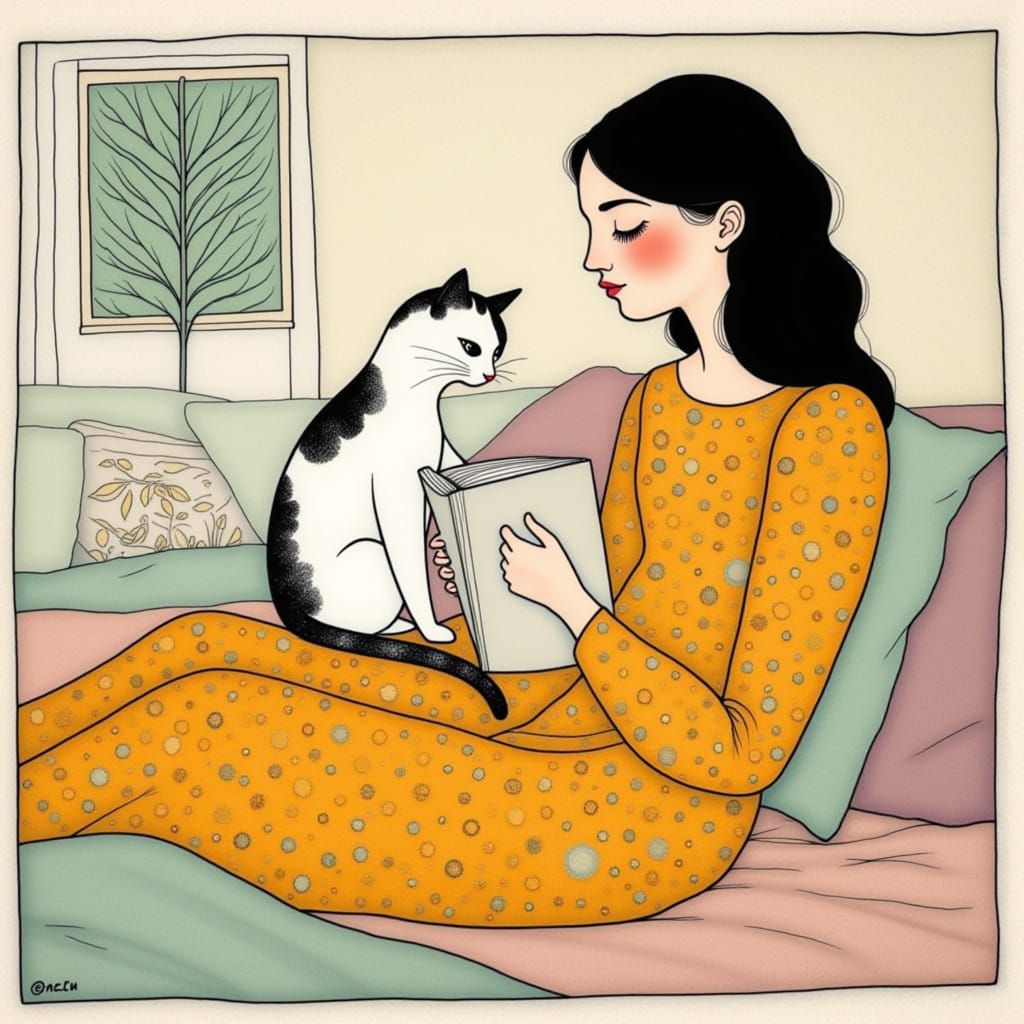 Generate unique images of people reading with cats. It's free, fast, and easy to use.