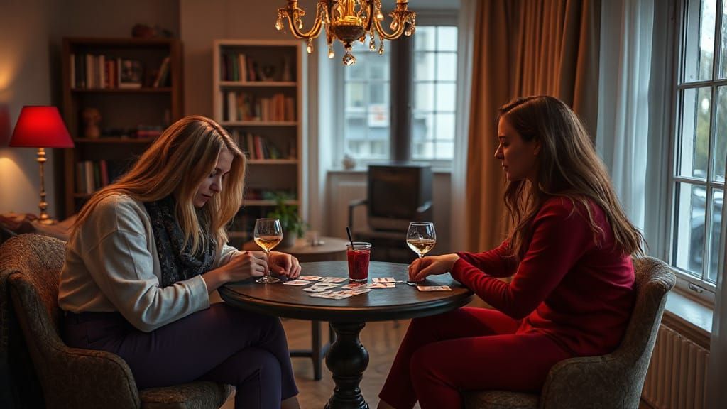 She is visiting a dear friend in Stockholm. After playing cards, they start a deep conversation