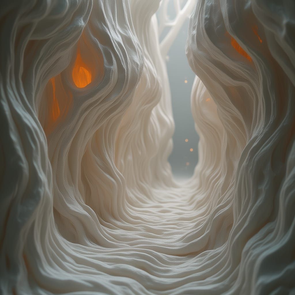 This image showcases a captivating abstract world constructed from intricately folded origami shapes, featuring elegant and precise curves that create a sense of wonder.