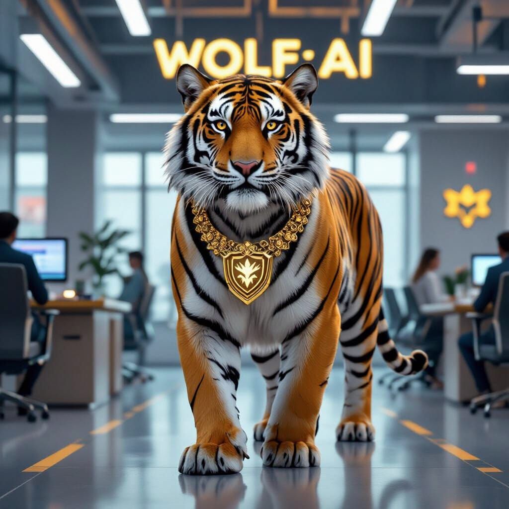 A majestic Tiger roams the offices of WOLF ~AI..!♤
