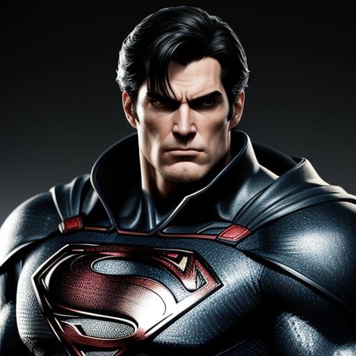 This image showcases Superman in a hyper-realistic product photography setting, featuring intricate details and textures of his costume and gear, as well as the plastic blister pack and cardboard backing, all perfectly composed with high-end studio lighting and HDR color grading.