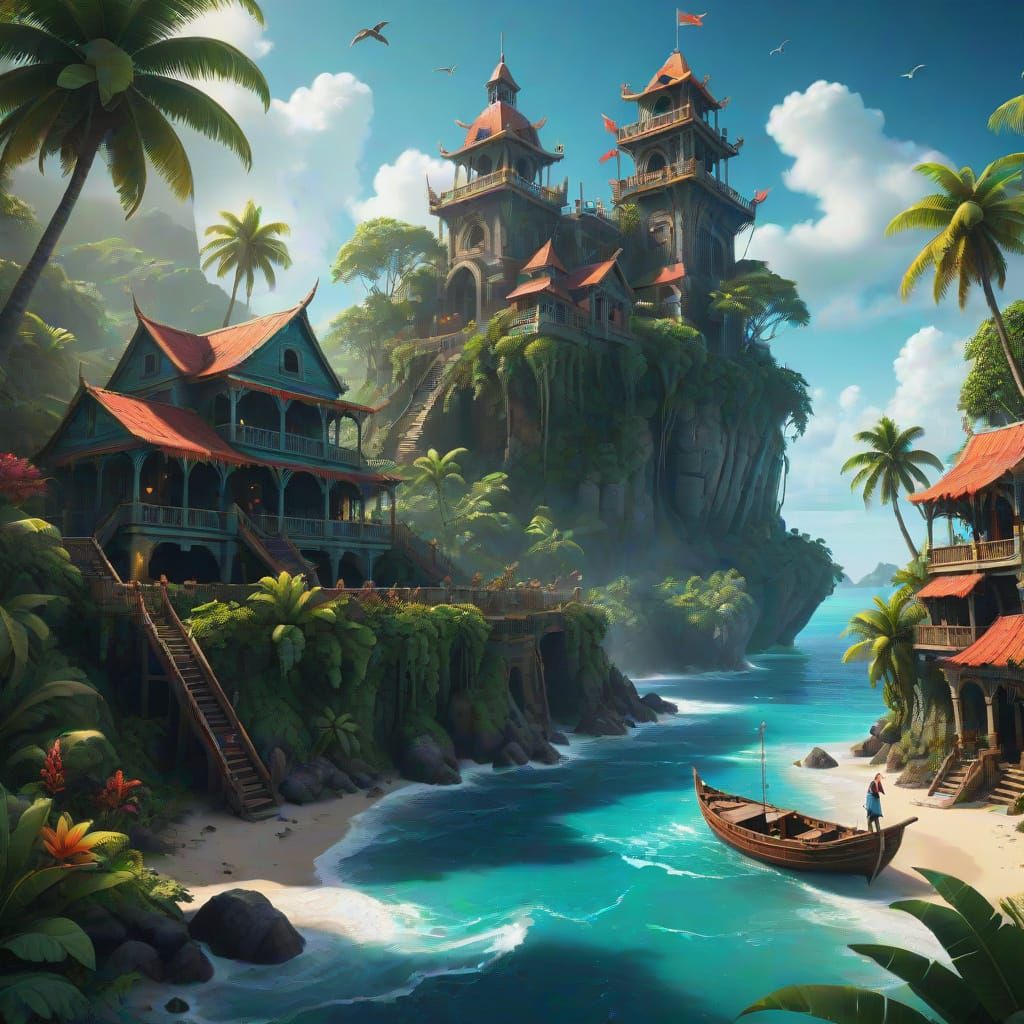 This image shows a detailed matte painting of a Caribbean Community Day. The artwork features deep colors and intricate details, rendered as fantasy concept art in 8k resolution.