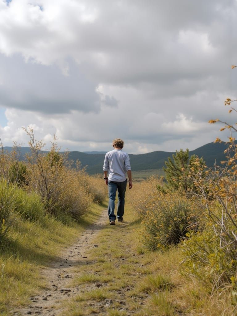 This image depicts a silhouetted figure against a moody desert sunset, rendered with dramatic lighting and rich color grading for a realistic film aesthetic.
