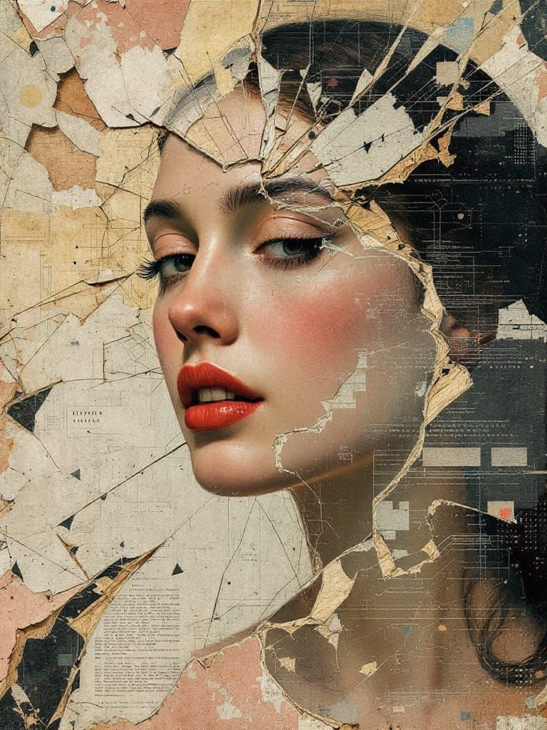 This image blends Renaissance fresco style with digital decay, showcasing a classical subject with visible data artifacts and pixelated elements. A balance of preserved and corrupted sections reveals the intersection of art and technology.