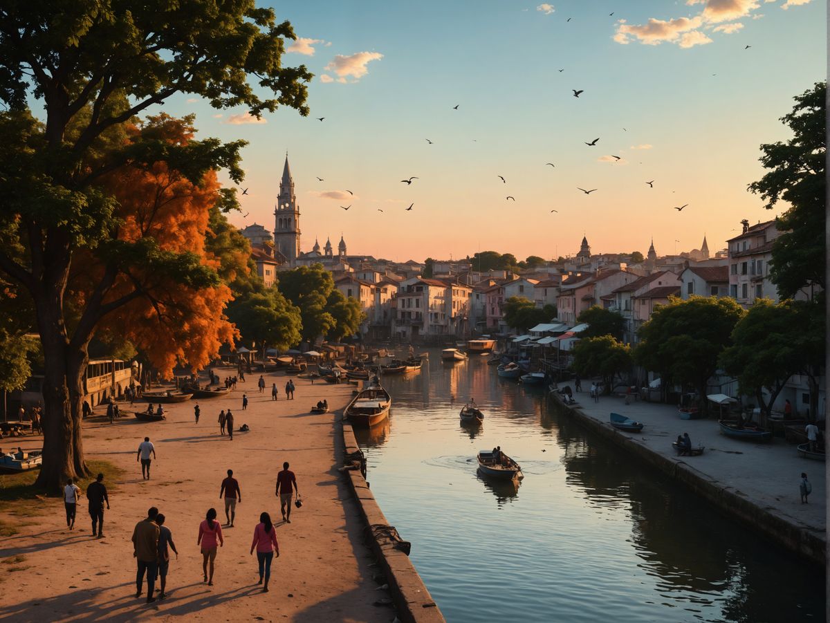 Easily generate your own Dutch city images with our free AI image maker, featuring warm colors and historic architecture