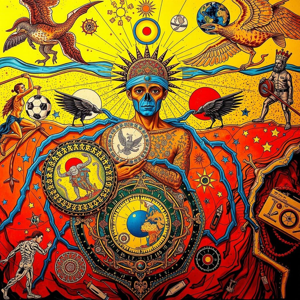 This image shows an AI interpretation of several academic disciplines. The image represents a blend of phenomenology, cosmology, anthropology, pharmacology, geology, and ontology.