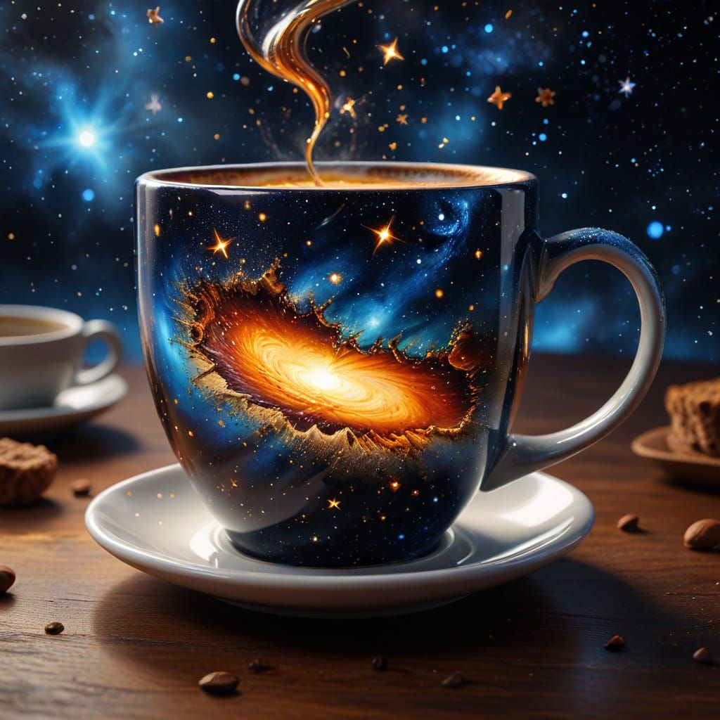 Create your own ultra-realistic cosmic coffee cup images with our free AI image generator! It's easy and fun.