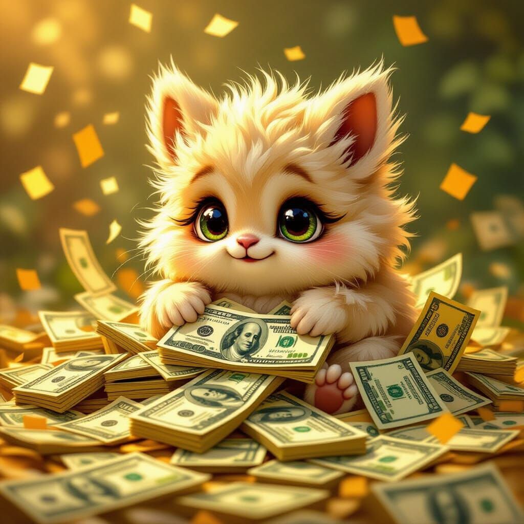 Generate unique creatures surrounded by money and dollar bills with our free and easy AI image generator. Get creative!