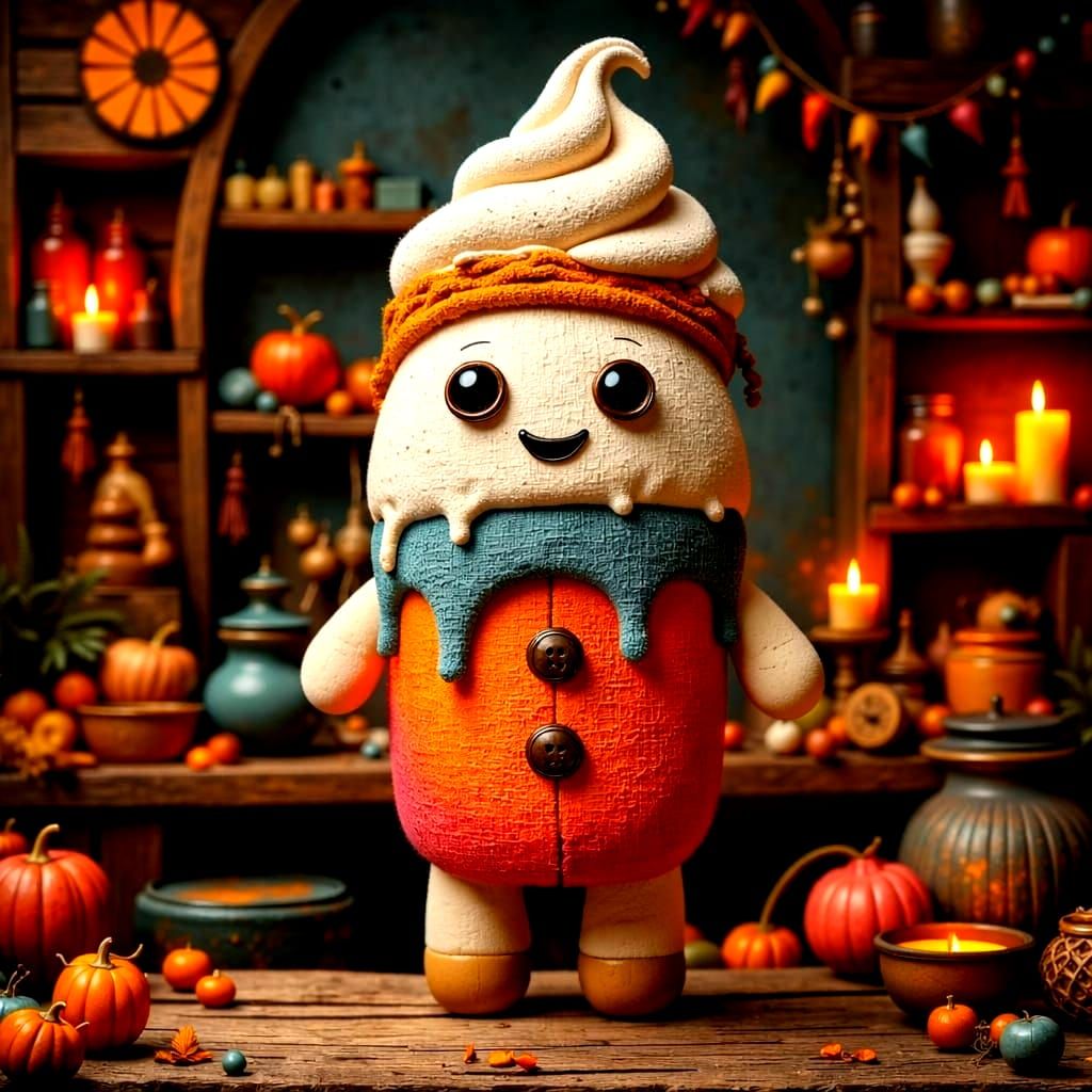 This is what happens when you leave a marshmallow in the pantry too close to a knitting kit and a spice rack. He’s dressed for a brisk November walk but lacks the knees to actually take one. He spends his days successfully blending in with the pottery and unsuccessfully trying to hide his delightful swirl from hungry passersby.