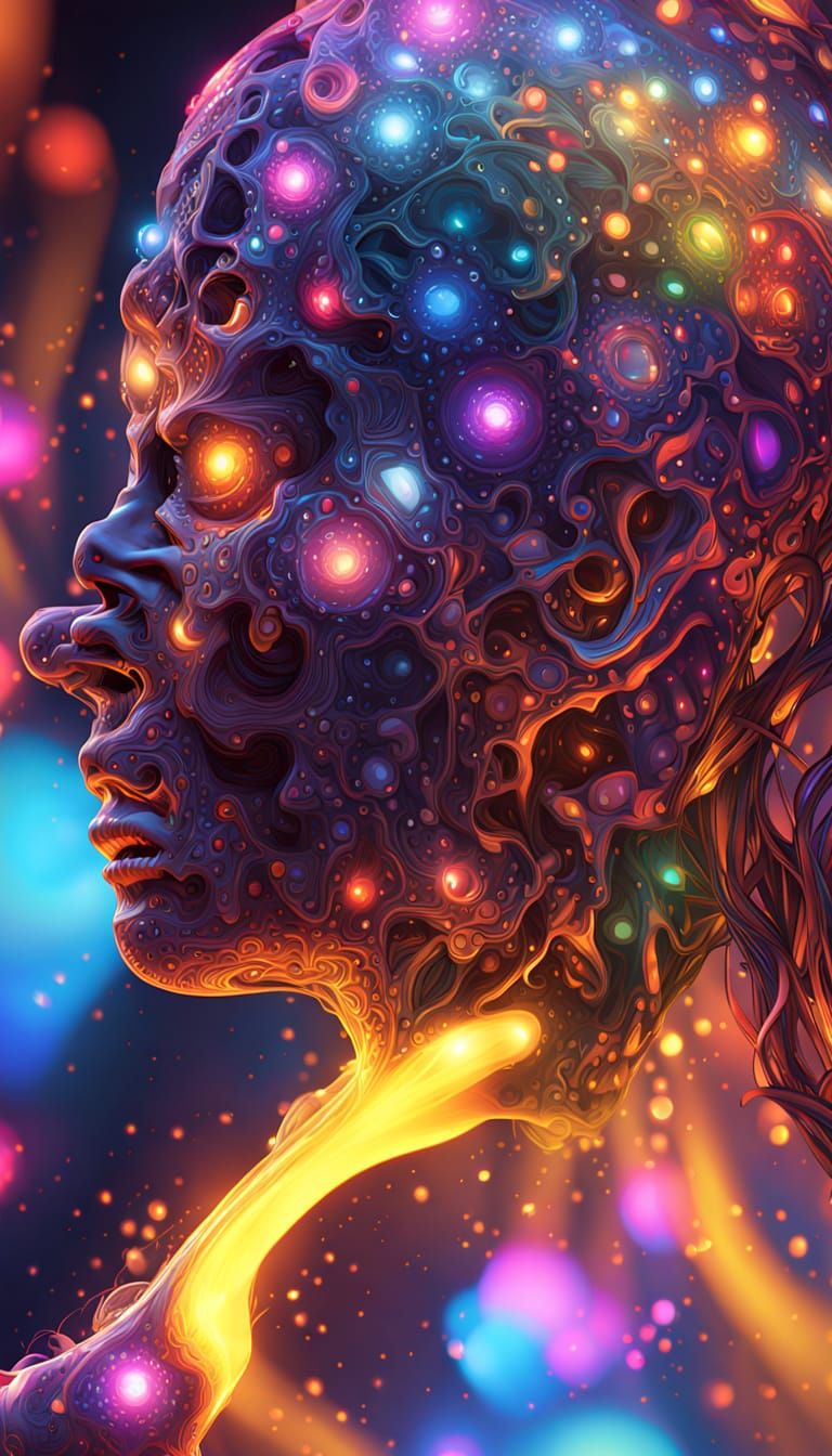 This image presents a sensual surrealist scene with a maximalist aesthetic, rendered in hyperrealistic digital art with volumetric lighting and sharp focus.